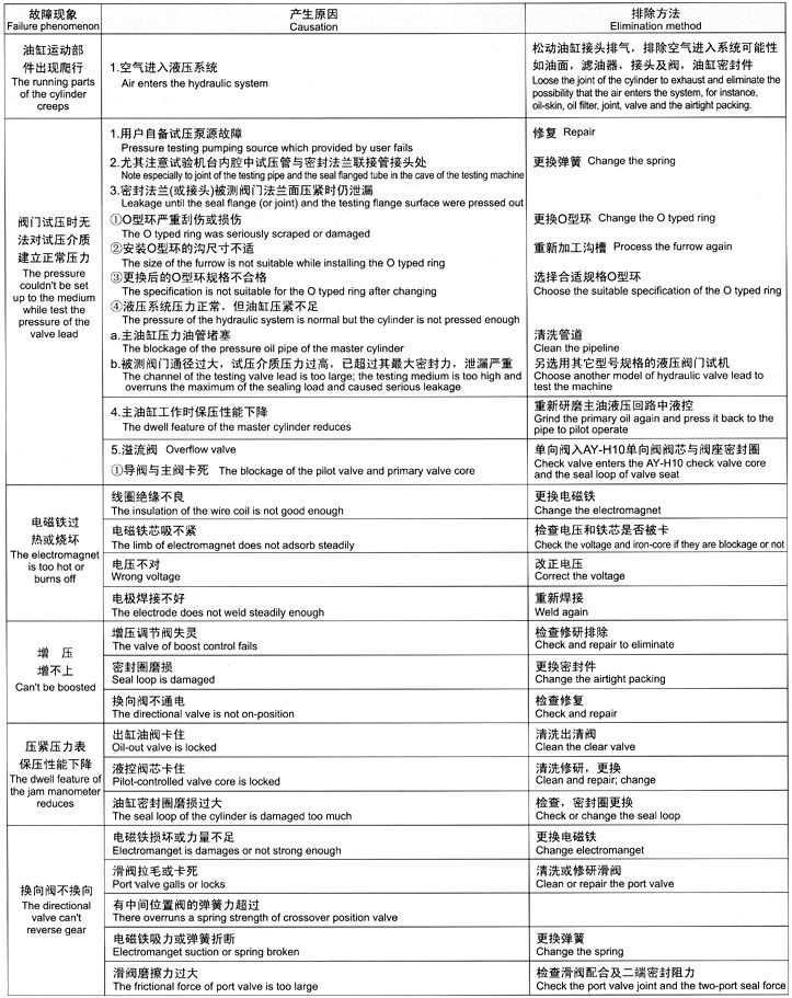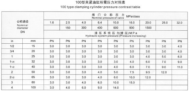 四、測(cè)試閥門時(shí),首先應(yīng)根據(jù)被試閥門試驗(yàn)要求,參照《夾緊油缸所需壓力對(duì)照表》進(jìn)行所需壓力增壓調(diào)節(jié)。嚴(yán)禁增壓超高
