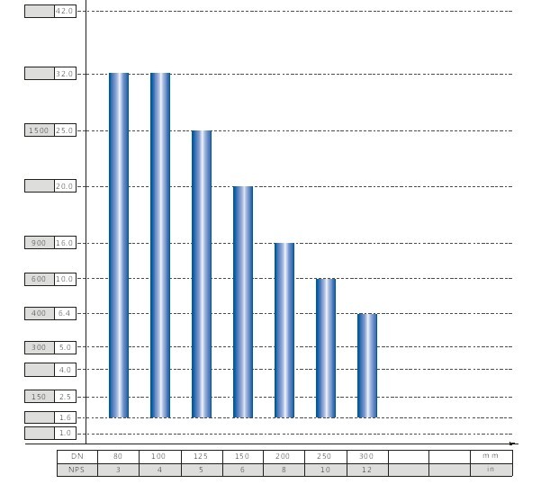 ??????? The test range of valve nominal diameter and nominal pressure for JWZ-300 model