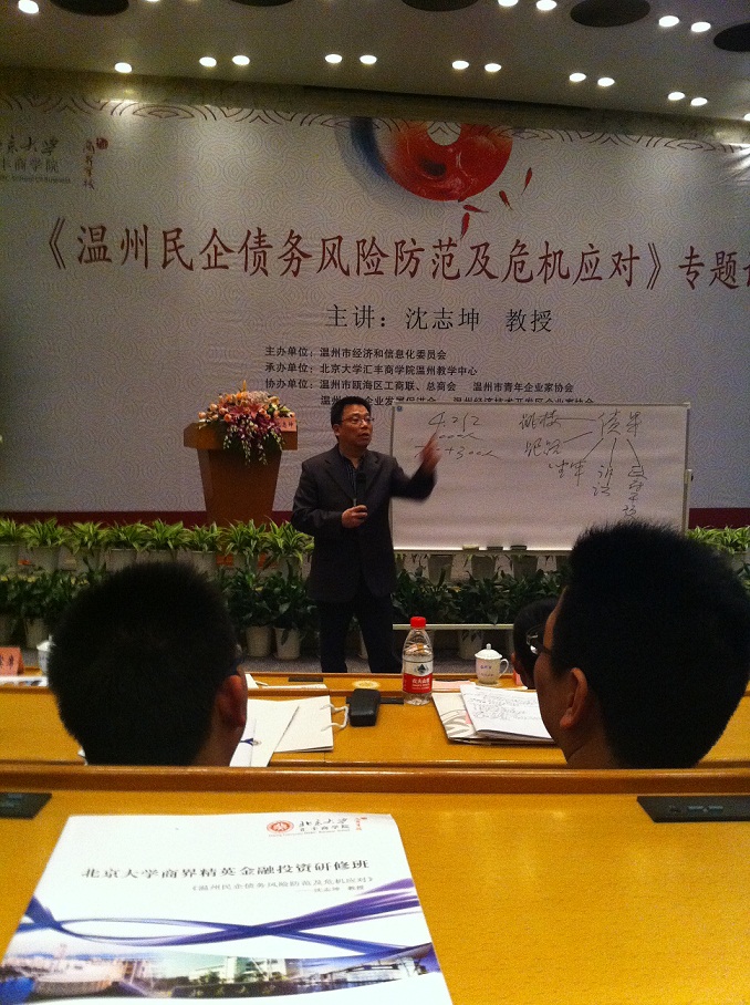 本月8日應(yīng)溫州中小企業(yè)發(fā)展促進(jìn)會(huì)的邀請(qǐng)我公司領(lǐng)導(dǎo)參加在溫州市人民大會(huì)堂5樓國際會(huì)議廳舉行的溫州民企債務(wù)風(fēng)險(xiǎn)防范及危機(jī)應(yīng)對(duì)專題講座,本期講座由溫州市經(jīng)濟(jì)和信息化委員會(huì)主辦,北京大學(xué)匯豐商學(xué)院溫州教學(xué)中心具體承辦。本次講座的內(nèi)容是針對(duì)溫州民營企業(yè)特點(diǎn),主要分析當(dāng)前溫州民企在生產(chǎn)、經(jīng)營過程中所要面對(duì)的主要債務(wù)和法律風(fēng)險(xiǎn)以及如何應(yīng)對(duì)與防范風(fēng)險(xiǎn)的建議,引導(dǎo)企業(yè)在處理危機(jī)的過程中實(shí)現(xiàn)企業(yè)的持續(xù)健康發(fā)展。